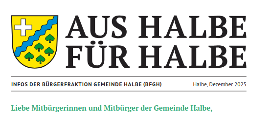 Sie finden den Infobrief unter dem Link: https://buergerfraktion-halbe.de/251228-Infobrief-BFGH-Nummer-2.pdf